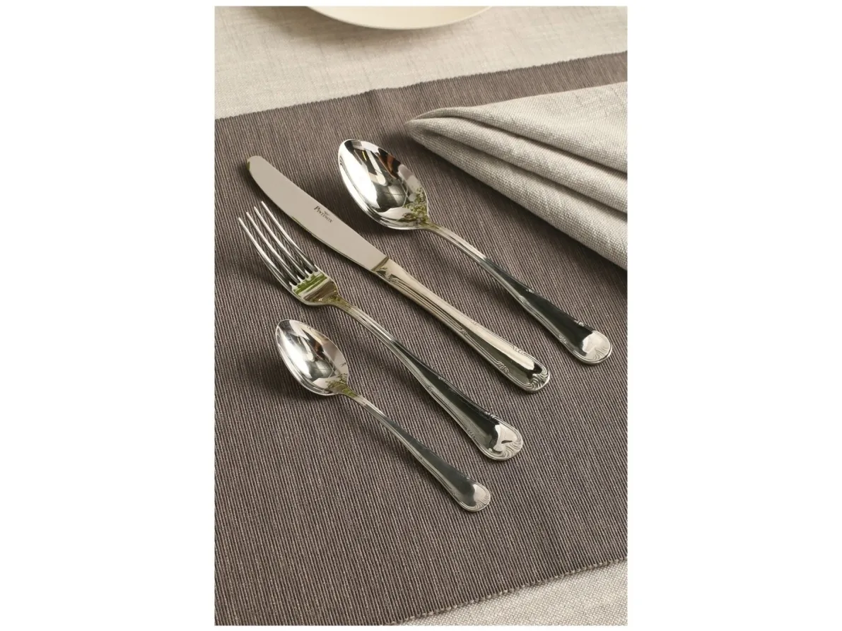 Komplett set med bestick i rostfritt stål för 6 personer. Setet med 24 delar innehåller en sked, gaffel, kniv och tesked. Den stentvättade ytan gör att den känns vintage och passar perfekt till den mer romantiska dukningen. Förpackade i en Compact Box (CB) Blue/Yellow