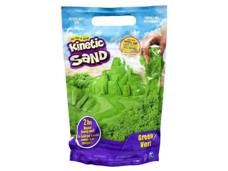 Blanda, forma och skapa allt du kan tänka dig med Kinetic Sand 0,9 kg grönt färgpaket! Kinetic Sand är originalet, den magiska, formbara och fascinerande sanden. Den rinner genom händerna och torkar aldrig ut, så du kan leka om och om igen. Med 0,9 kg färgglad Kinetic Sand kan du krama, blanda, skära eller forma - de kreativa möjligheterna är ändlösa! Den unika Kinetic Sand-formulan gör den lätt att forma till allt du kan tänka dig. Kinetic Sand 0,9 kg färg-pack finns i fyra färger (lila, grön, blå och rosa) och levereras i en behändig, återförslutbar påse, som är idealisk för förvaring. Skapa om och om igen och låt Kinetic Sand rinna genom händerna - det är så tillfredsställande att du inte kommer att kunna sluta! Kinetic Sand tillverkas av naturlig sand och är fri från vete, gluten och kasein. Känn det roliga med Kinetic Sand 0,9 kg grön färg-pack!