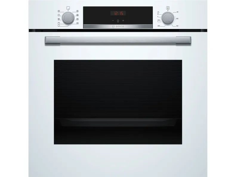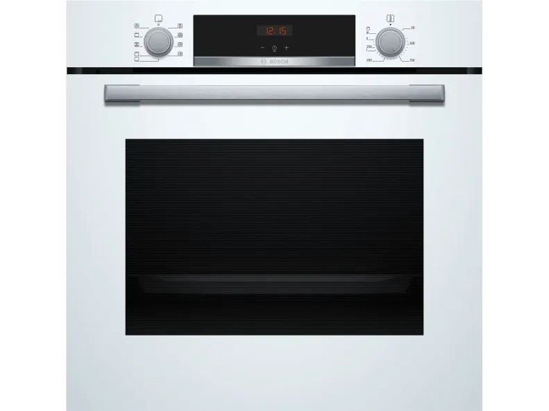 Bosch Serie 4 HBA534BW3. Oven size: Medium, Oven type: Electric, Total oven(s) interior capacity: 71 L. Appliance placement: Built-in, Product colour: White, Control type: Rotary, Touch. Timer type: Digital. Energy efficiency class: A+, Energy consumption (conventional): 0.94 kWh, Energy consumption (forced convection): 0.69 kWh. Lamps quantity: 1 lamp(s), Lamp type: Halogen