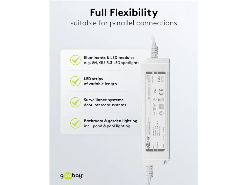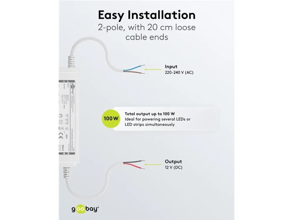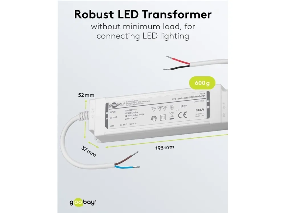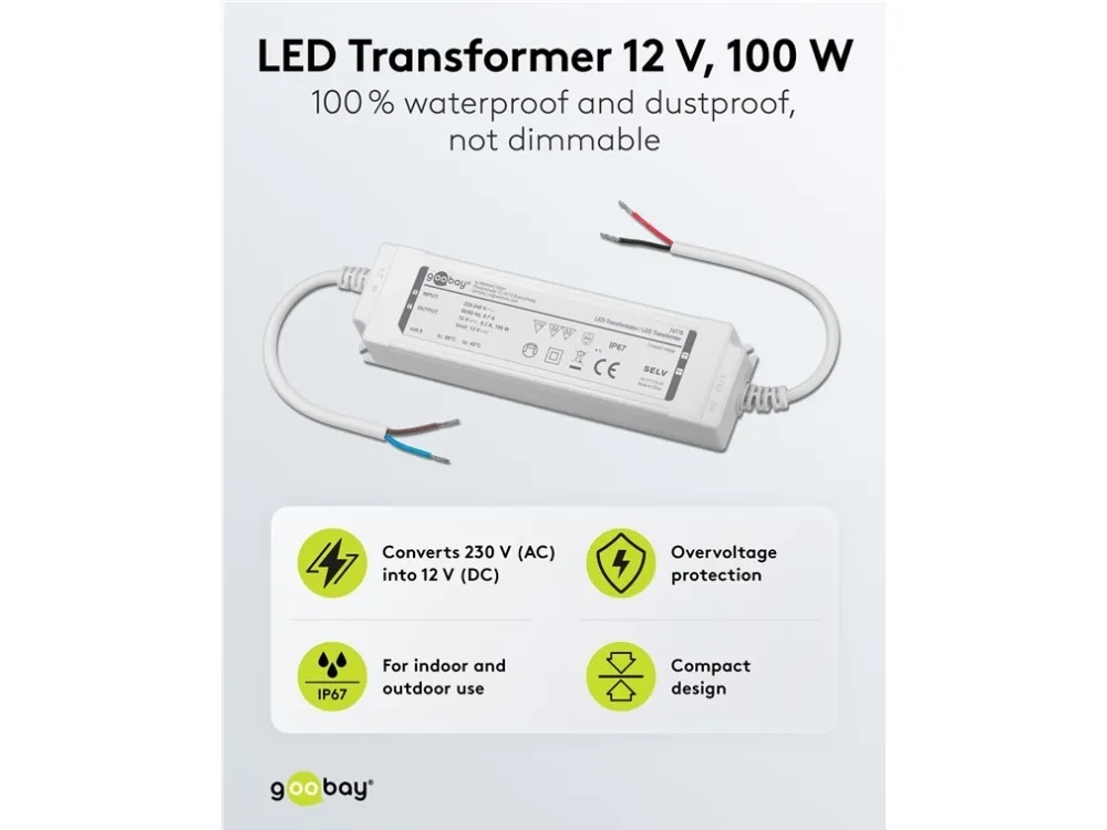 Goobay 74770, Elektronisk transformator till belysning, Vit, IP67, -20 - 45 ° C, 100 W, 220 - 240 V