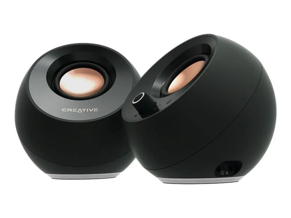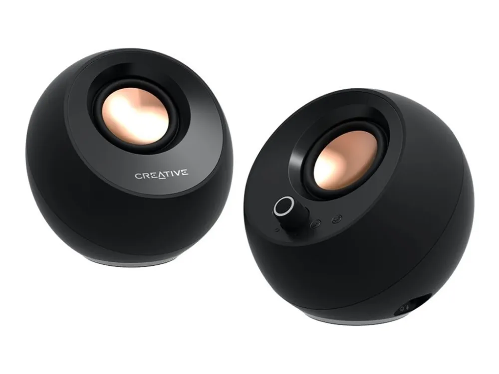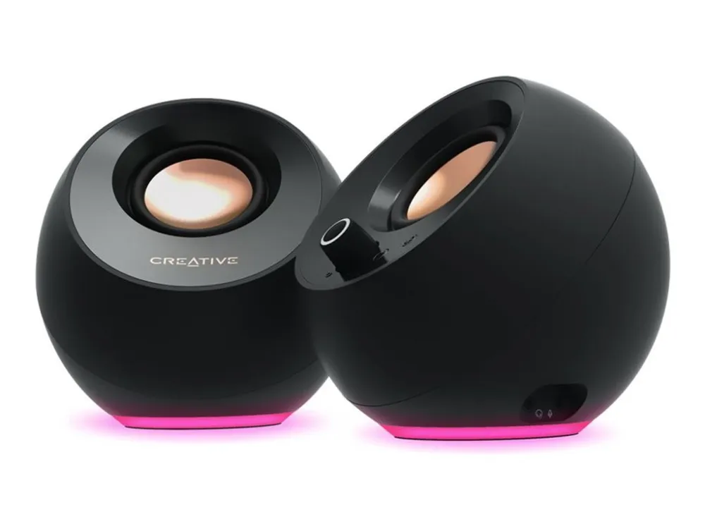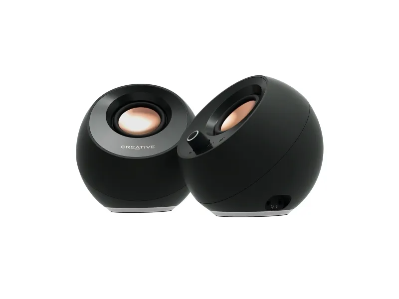 Creative Pebble Pro-högtalarna är utformade för en omslutande ljudupplevelse skräddarsydd för PC-användare. Dessa kompakta högtalare har en vinklad design som förbättrar ljudprojektionen och ger en modern touch till alla arbetsytor. Utrustad med RGB-belysning kan de lägga till en färgklick som synkroniseras med din miljö och ditt humör.