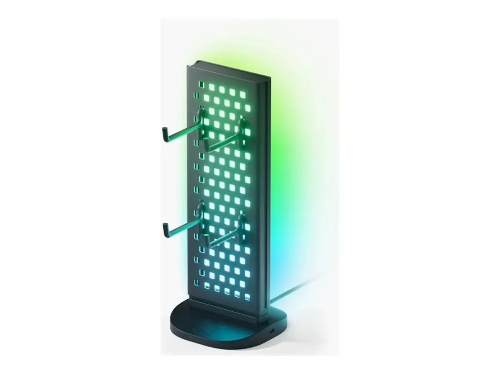 The Nanoleaf Pegboard charging station combines functionality with aesthetics, making it an essential accessory for any workspace. This desk dock features a USB-C built-in cable along with a USB-C extension cable, ensuring convenient connectivity for all devices. With compliance to Plug-and-Play standards and a robust IP20 rating, it is designed to be user-friendly and durable. With an output of 15 W, the charging station supports multiple devices simultaneously with its three output connectors including two USB-C ports and one USB Type-A port. The built-in LED illumination lights and Razer Chroma RGB enhance the workspace ambiance, providing customizable lighting effects to match any mood or theme.