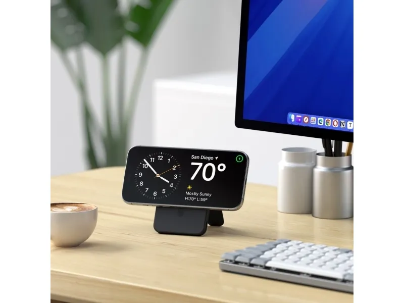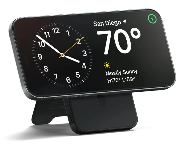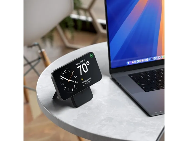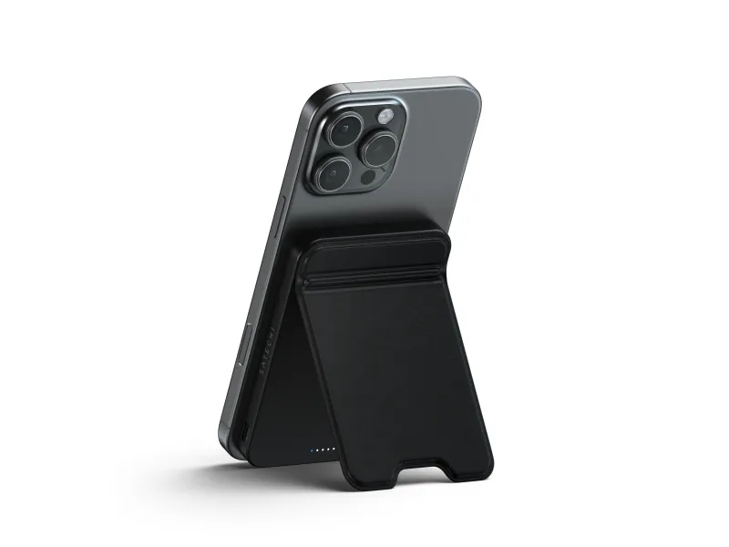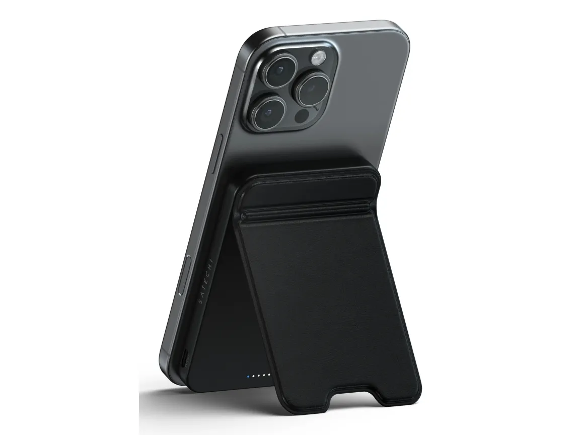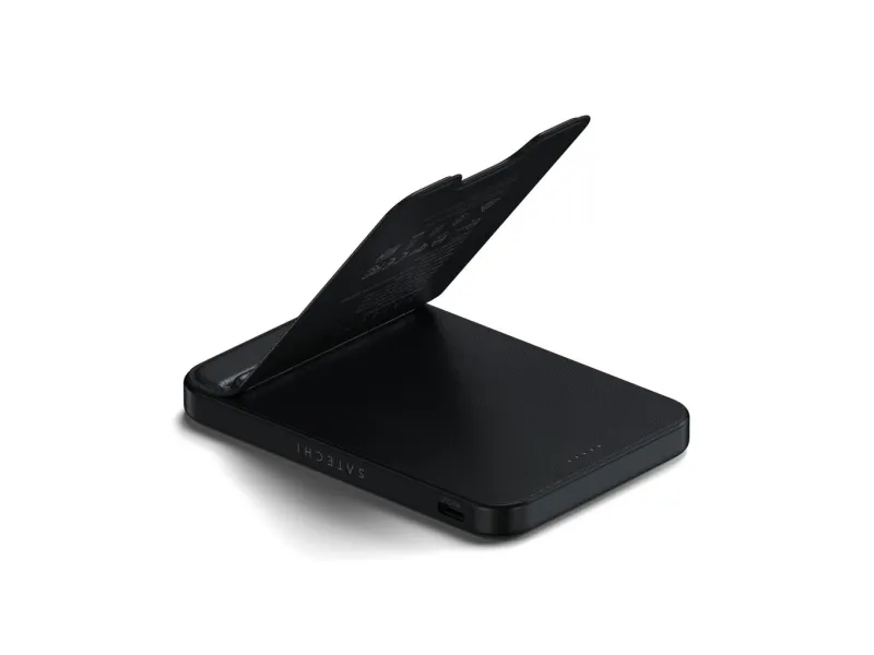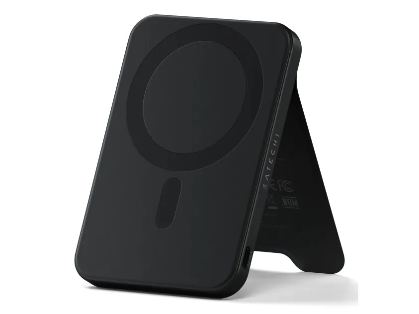 Power your devices anywhere with Satechi's premium Qi2 5K Magnetic Power Bank with Stand. This sleek portable charger combines 15W fast charging technology with a convenient built-in stand perfect for on-the-go professionals and travelers who need reliable power and hands-free viewing options in one elegant device.Premium portable 5 000mAh power bank with built-in adjustable standAdvanced Qi2 technology delivers fast 15W wireless chargingSecure magnetic alignment for perfect connection every timeSleek aluminum frame with soft silicone charging surfaceIntelligent safety features prevent overheating for worry-free chargingPremium portable 5 000mAh power bank with built-in adjustable stand The Satechi Qi2 Magnetic Power Bank combines portability with convenience featuring a robust 5 000mAh battery in an ultra-slim design that easily slips into your bag or pocket. What truly sets this power bank apart is its thoughtfully designed built-in stand with durable hinges that provide smooth adjustments for the perfect viewing angle. Whether you're watching videos making video calls or using StandBy mode you'll enjoy hands-free convenience in both portrait and landscape orientations. Advanced Qi2 technology delivers fast 15W wireless charging Experience charging speeds that keep pace with your busy lifestyle. The Satechi Qi2 5K Magnetic Power Bank delivers impressive 15W wireless charging?twice as fast as standard 7.5W wireless options. This means less time waiting for your devices to power up and more time staying productive. The power bank also features USB-C connectivity with 20W output/input for additional charging options and quick recharging of the power bank itself. Secure magnetic alignment for perfect connection every time Forget the frustration of misaligned wireless charging. The Satechi Qi2 5K Magnetic Power Bank attaches effortlessly to your compatible device with a secure magnetic connection that ensures perfect alignment every time. Simply place your device on the soft silicone charging surface press the power button and charging begins instantly?no more checking to make sure your device is properly positioned to receive a charge. Sleek aluminum frame with soft silicone charging surface Designed for those who appreciate premium aesthetics the Satechi Qi2 5K Magnetic Power Bank features a sophisticated black aluminum frame that's both lightweight and durable. The soft-touch silicone charging surface not only provides precise magnetic alignment but also protects your device from scratches. This power bank seamlessly blends style and functionality complementing your tech accessories while delivering powerful performance. Intelligent safety features prevent overheating for worry-free charging Charge with confidence knowing the Satechi Qi2 5K Magnetic Power Bank incorporates advanced safety features to protect both the power bank and your valuable devices. Built-in intelligent protections prevent overheating overcharging and short circuits ensuring a safe and reliable charging experience every time. The power bank also supports simultaneous charging through both wireless and USB-C connections with a total output of 10W (5W Qi2 + 5W USB-C) giving you flexible options to charge multiple devices. Package includes:Satechi Qi2 5K Magnetic Power Bank with Stand - BlackUSB-C to USB-C CableProduct ManualProduct specifications:Connector Type: USB-CDimensions: 2.76 in (7 cm) x 0.44 in (1.11 cm) x 4.01 in (10.2 cm)Weight: 154.8 g / 5.46 ozCable Length: 11.8 in / 30 cmBattery Capacity: 5 000mAhCharging Speed: Qi2 Wireless - 15W USB-C - 20W (Output/Input)Simultaneous Charging: Qi2 (5W) + USB-C (5W) = 10W Total OutputCompatible with Qi Qi2 and MagSafe Wireless ChargingDevice cases must be no thicker than 3mm and free of any metal housing or platingCompatible with iPhone 12-16 Series Samsung Galaxy (with adapter) Google Pixel OnePlus and other Qi-enabled devicesColour: Black