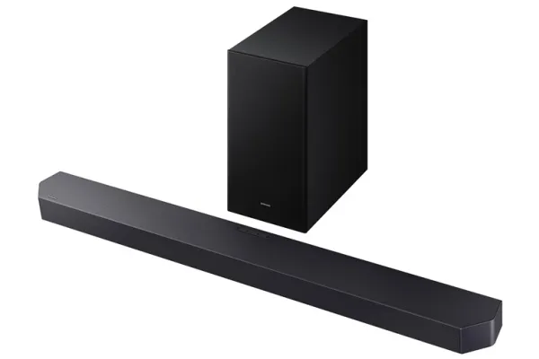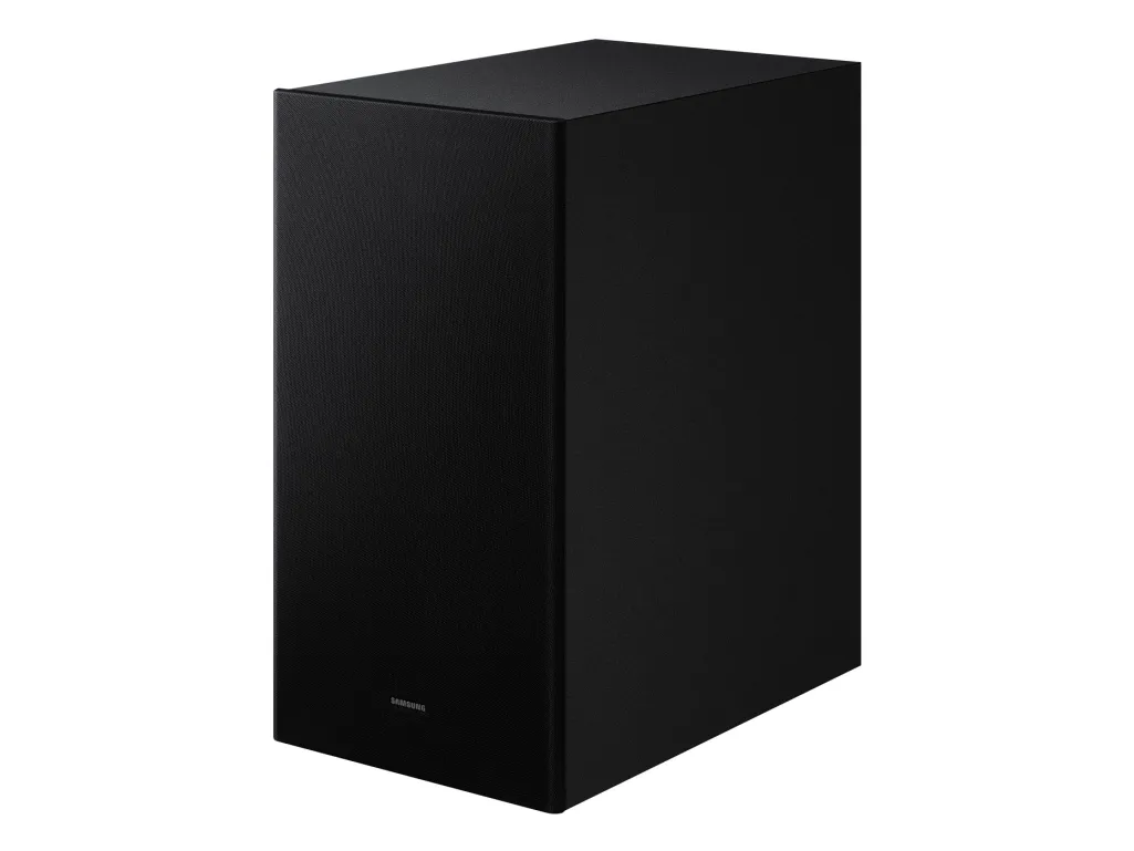 The Samsung HW-Q600F sound bar system offers an immersive audio experience with its 3.1.2-channel setup. Designed to deliver rich sound reproduction, this system features built-in decoders like Dolby Atmos and DTS Virtual:X for 3D surround sound. The Night Mode ensures quieter listening during late hours while the adaptive sound mode optimizes audio output based on the content you are enjoying. With Q-Symphony technology, the sound bar works in harmony with compatible Samsung televisions for a synchronized audio experience. Wireless connectivity options such as Bluetooth 4.2 and HDMI-eARC enhance versatility, while the USB-host media content source allows enjoyment of music from various formats including MP3, WAV, and FLAC.