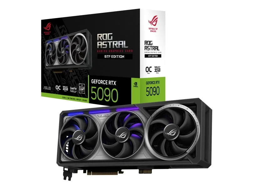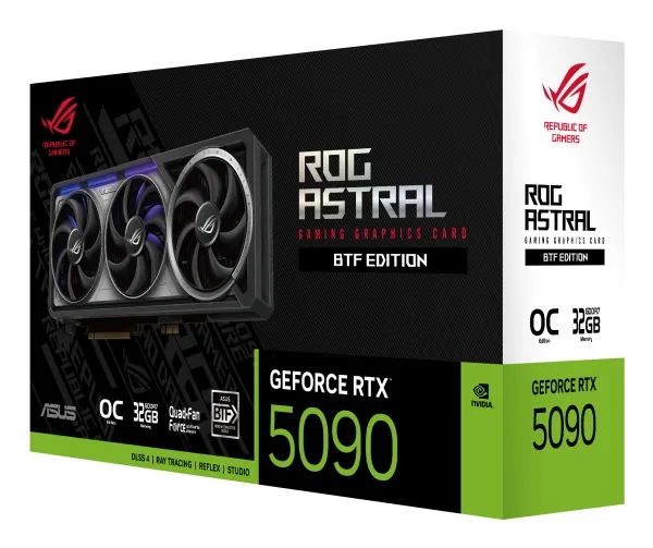 The ASUS ROG Astral combines high performance and innovative technology for an exceptional gaming experience. Featuring the NVIDIA GeForce RTX 5090 graphics processor, this graphics card delivers visuals with a maximum external resolution of 7680 x 4320. With an installed size of 32 GB GDDR7 SDRAM and a memory speed of 28 Gbps, it ensures smooth gameplay and responsiveness across multiple monitors, supporting up to four displays simultaneously. Equipped with advanced features such as VR readiness, NVIDIA G-Sync integration, and dual BIOS, the ASUS ROG Astral is designed for gamers and creators alike. The unique vapor chamber cooling technology, along with the 3.8-slot Fan Cooler and quad fan design, ensures optimal thermal performance for sustained usage during intense tasks. Additionally, the inclusion of ASUS AURA SYNC support, ARGB lighting, and NVIDIA DLSS 4 enhances the visual experience, making this graphics card a choice for those who seek quality in their gaming setup.