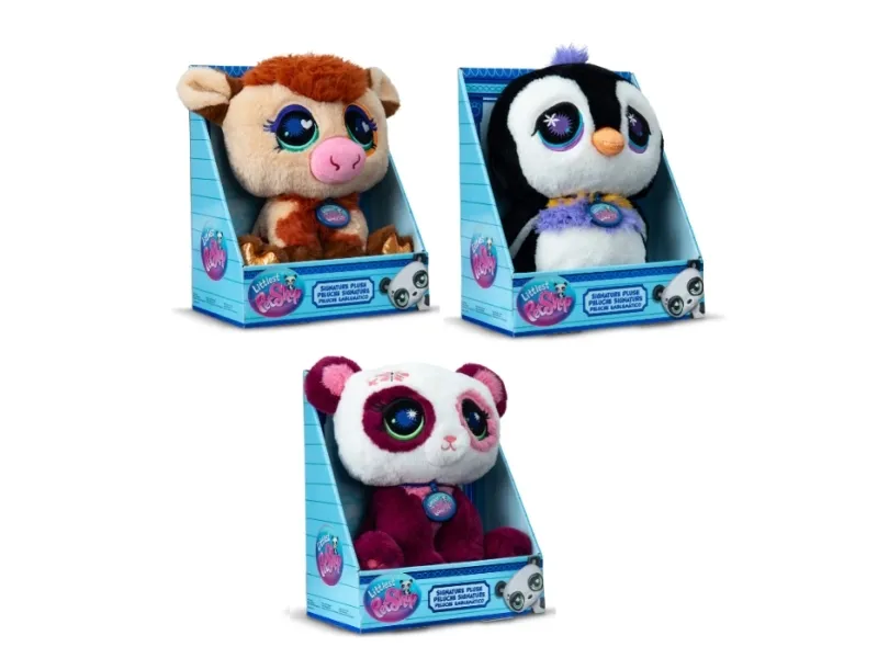 Get ready to cuddle up with the biggest stars of the Littlest Pet Shop! These 25 cm Signature Plush Pets bring your favorite characters to life in soft, huggable form. Each plush is made with high-pile snuggly fabric and features vibrant embroidered details, oversized expressive eyes, and a signature LPS collar that fans will recognize instantly.