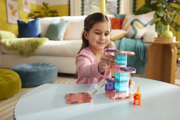Bygg ett roligt magnetiskt klätter- och katträd med MAGNA-TILES. Mini-leksetet innehåller en kattfigur och MicroMAGS. Från 3 år.