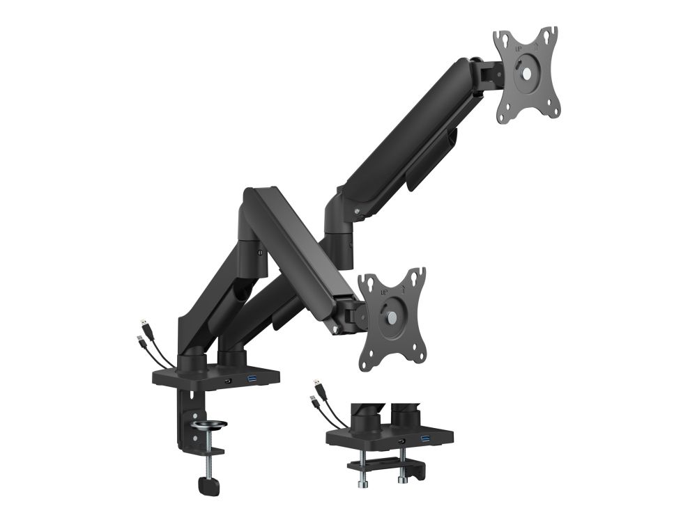 Gembird - Monteringssats (arm för bordsmontering) - justerbar arm - för 2 LCD/plasmapaneler - USB-portar - stål, plast - svart av fin textur - skärmstorlek: 17"-32" - disk-monteringsbar
