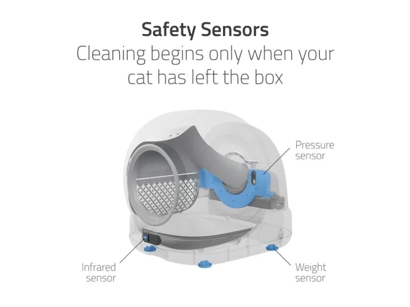 Inbyggda sensorer vet exakt när din katt går in och lämnar lådan och förhindrar aktivering under användning. Rengöringen startar först när din katt har lämnat lådan – vilket säkerställer trygghet och sinnesro för både dig och ditt husdjur.