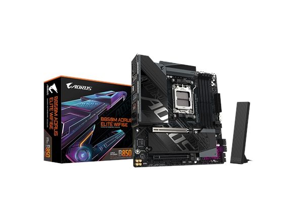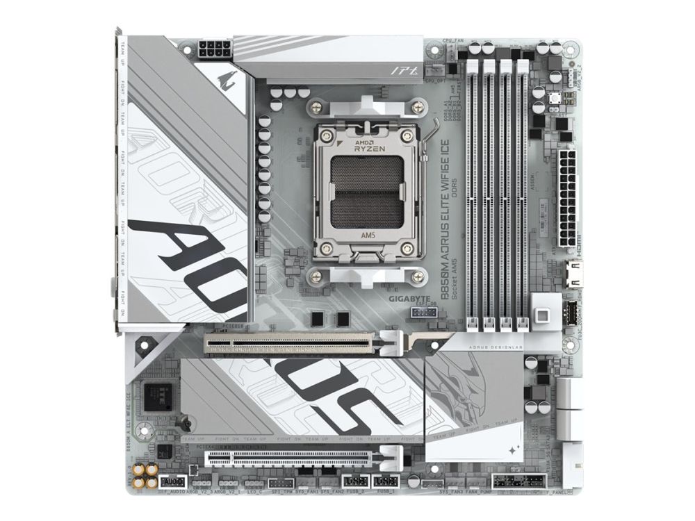 AORUS B850M ELITE WIFI6E ICE - Moderkort - micro ATX - Socket AM5 - AMD B850 Chipuppsättning - USB-C 3.2 Gen 2x2, USB-C 3.2 Gen2, USB 3.2 Gen 1, USB 3.2 Gen 2 - Bluetooth, 2.5 Gigabit LAN, Wi-Fi 6E - inbyggda grafiken (CPU krävs) - HD-ljud (8 kanaler)