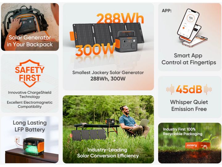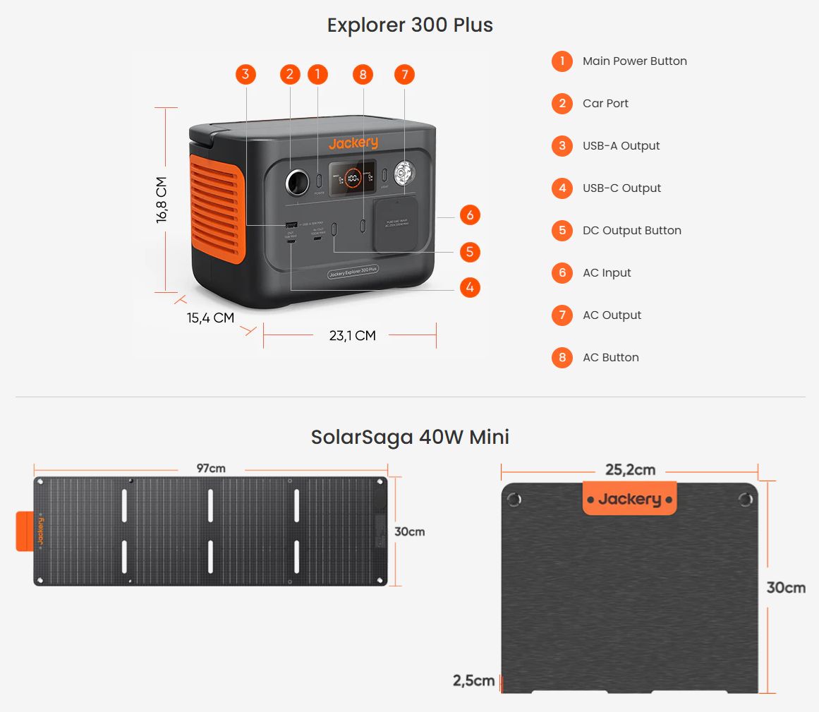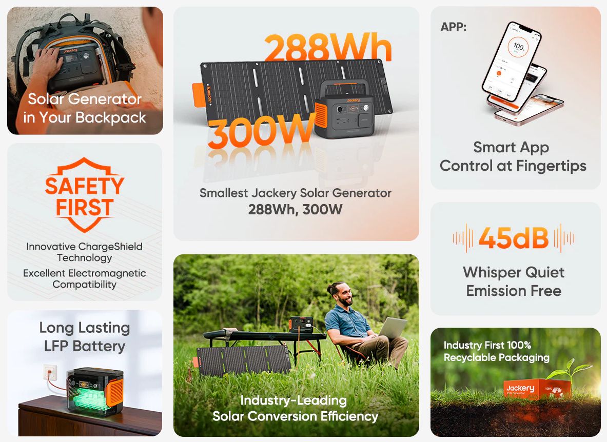 Med sin 300W AC Pure Sine Wave-inverter (600W toppeffekt) och en kapacitet på 288Wh kan Explorer 300 Plus ladda upp till 4 enheter samtidigt tack vare 1 AC-, 1 USB-A- och 1 USB-C-utgång, vilket gör laddning av flera enheter snabb och enkel. Dessutom är den lätt och kompakt nog att få plats i en ryggsäck, vilket gör den enkel att bära med sig.