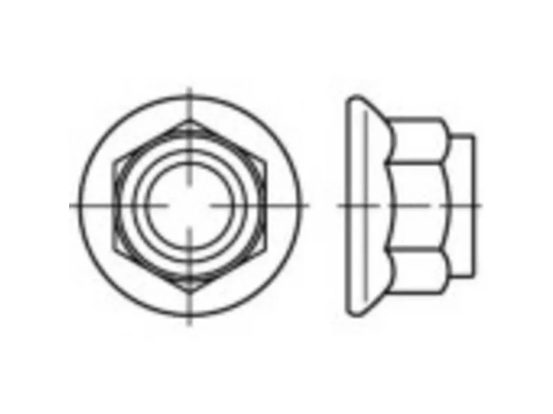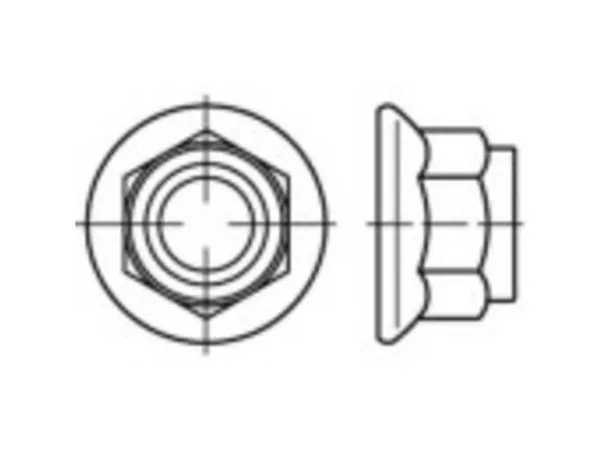 EN 1663 8 galvaniseret Sechskantmu. m. Klemmedel og flangen, med ikke-metalliske insert dimensioner: M 16