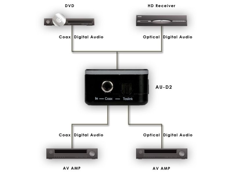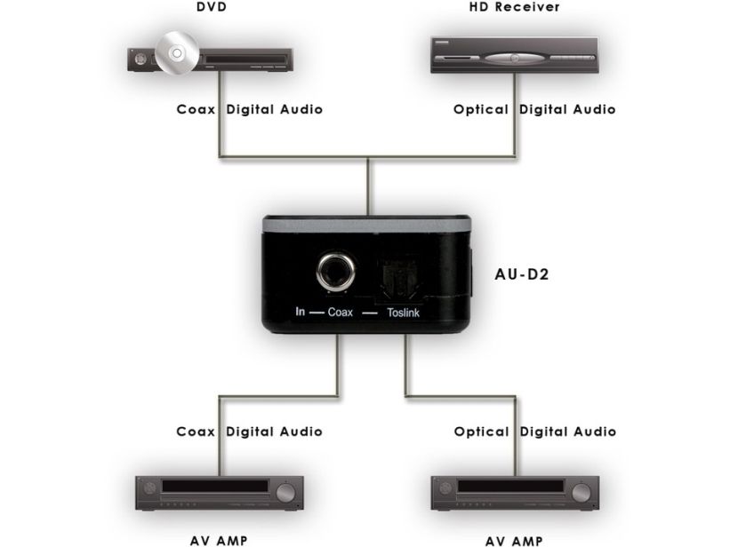 - Ideal if your Audio Source has a different audio digital output than your Audio Amplifier, for example.