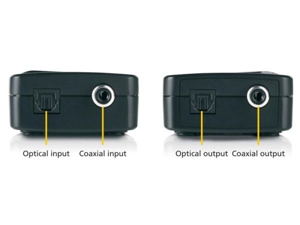- Two-way conversion; optical to coaxial or coaxial to optical.