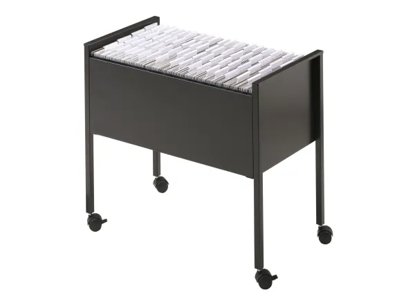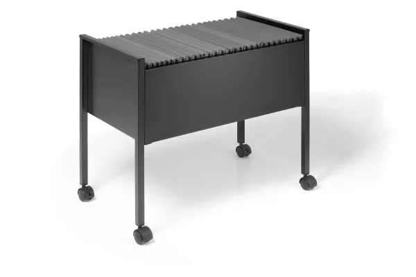 Hängmappvagn för ca 80 A4-hängmappar. Utrustad med fyra hjul, varav två med bromsar för stabilitet under användning. Tillverkad av epoxipolyesterbelagt stål för att ge en reptålig yta. Levereras platt förpackad med monteringsanvisningar. Mått: BxHxD 655x592x368