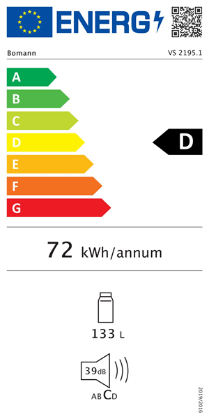 Bomann VS 2195 - Kylskåp - bredd: 56 cm - djup: 57.5 cm - höjd: 84.5 cm - 137 liter - Klass D - design i rostfritt stål