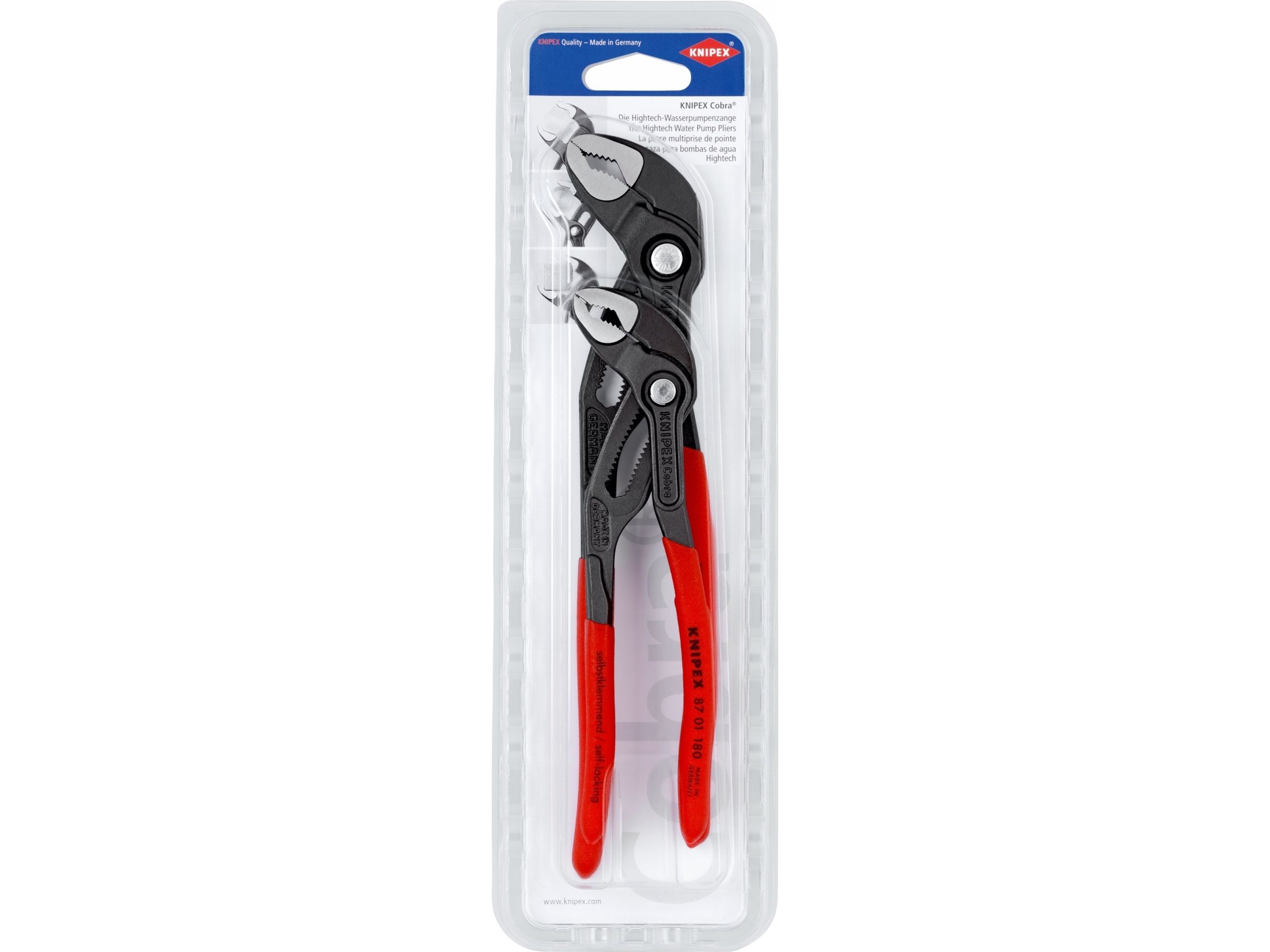 Leveringsomfang: 1 x 87 01 180 KNIPEX Cobra® Hightech-vandpumpetang, 1 x 87 01 250 KNIPEX Cobra® Hightech-vandpumpetang,