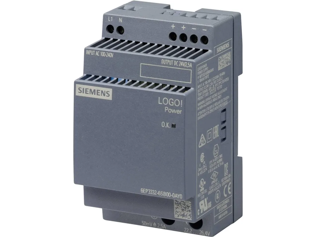LOGO!Power 24 V / 2.5 A stabiliseret strømforsyning input: 100-240 V AC output: 24 V / 2.5 A DC
