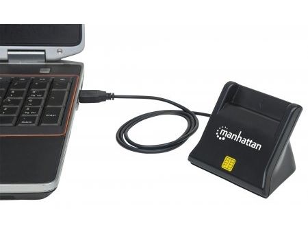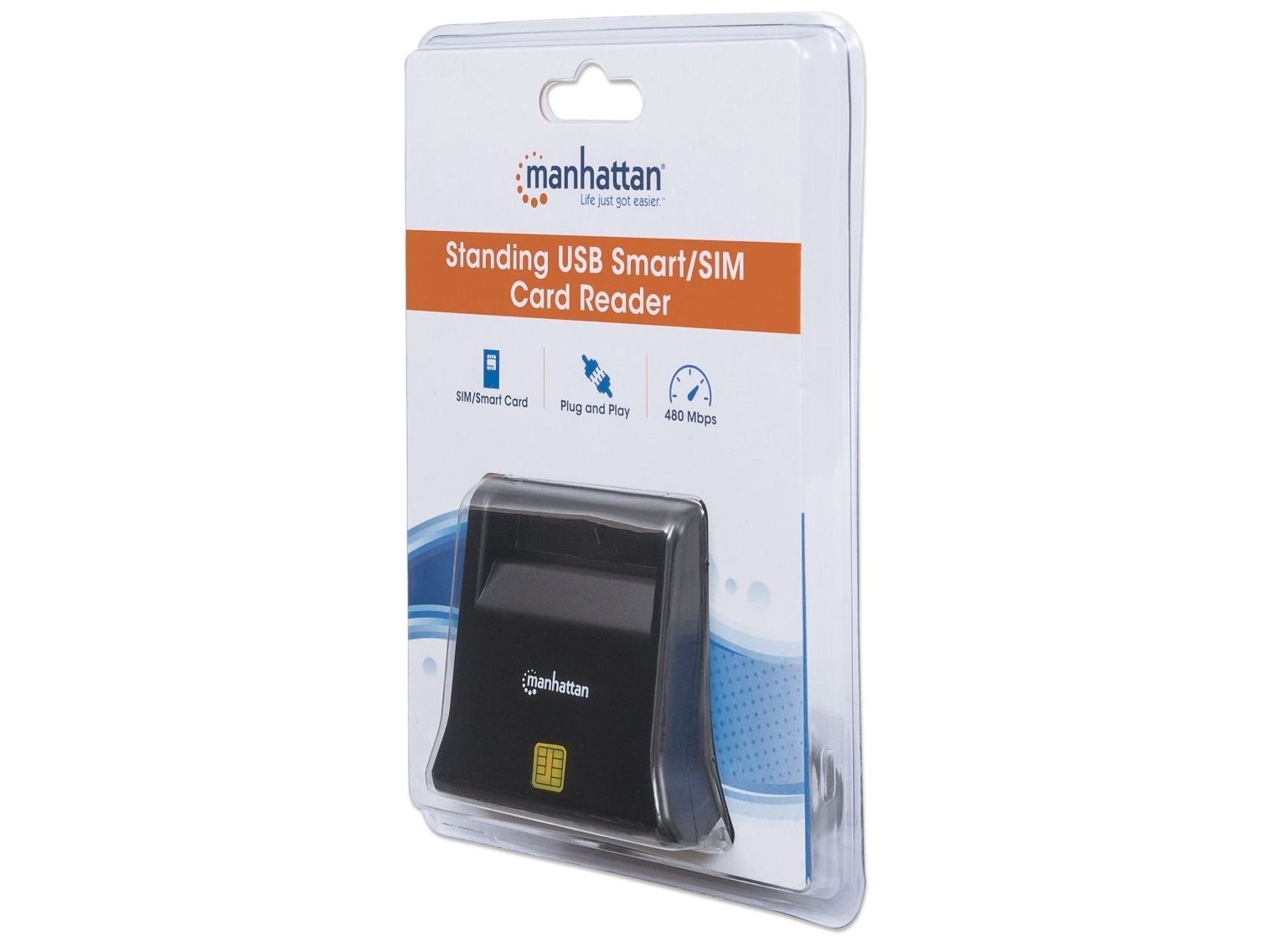 Ideal for desktop and notebook computers without built-in readers, the Manhattan USB Standing Smart/SIM Card Reader is easily installed using any USB port and the included software and driver CD. Plug and play with Windows and Mac compatibility, it requires no external power supply or cables for a simple USB connection.