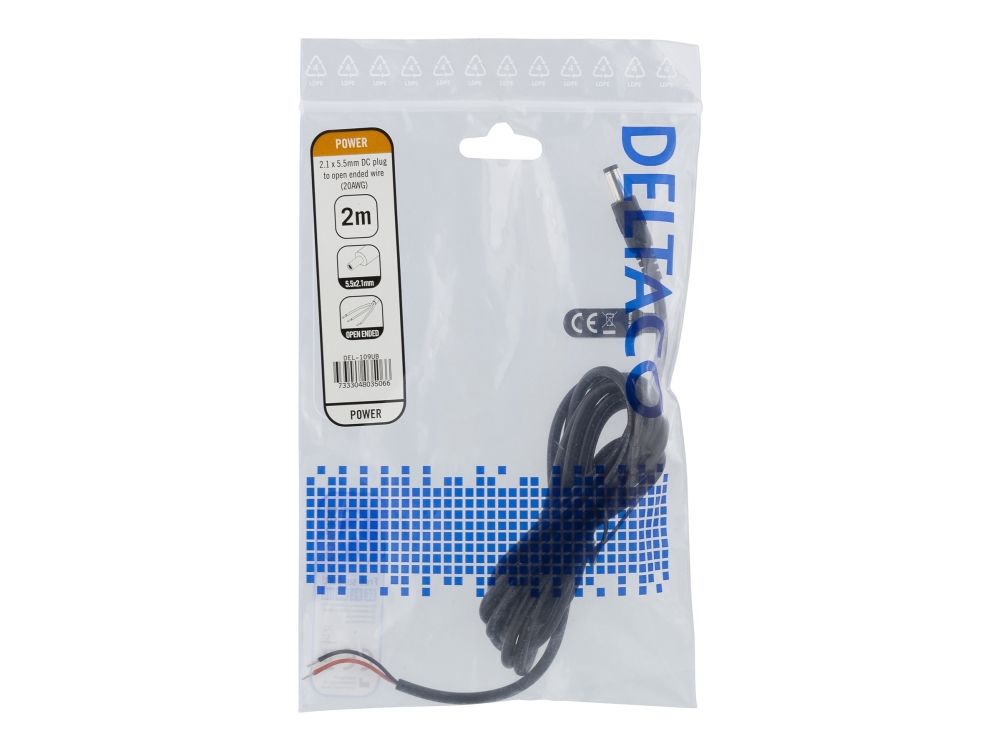 DELTACO - Strömkabel - DC-jack 5,5 x 2,1 mm till blank tråd - 2 m - svart
