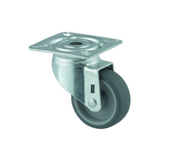 Svängbart gummihjul Ø50 mm 50 kg glidlager med platta bygghöjd 69 mm drifttemperatur -20/+60