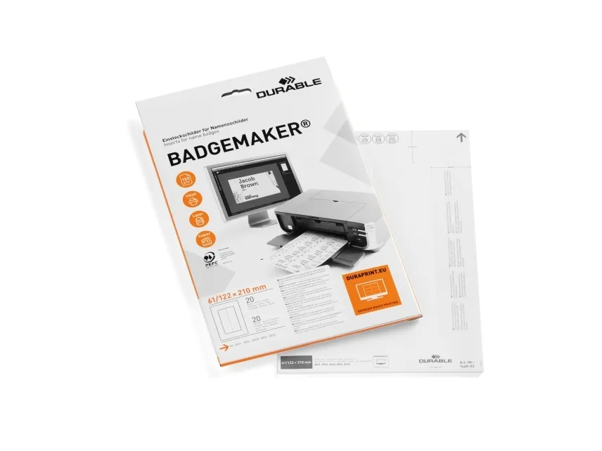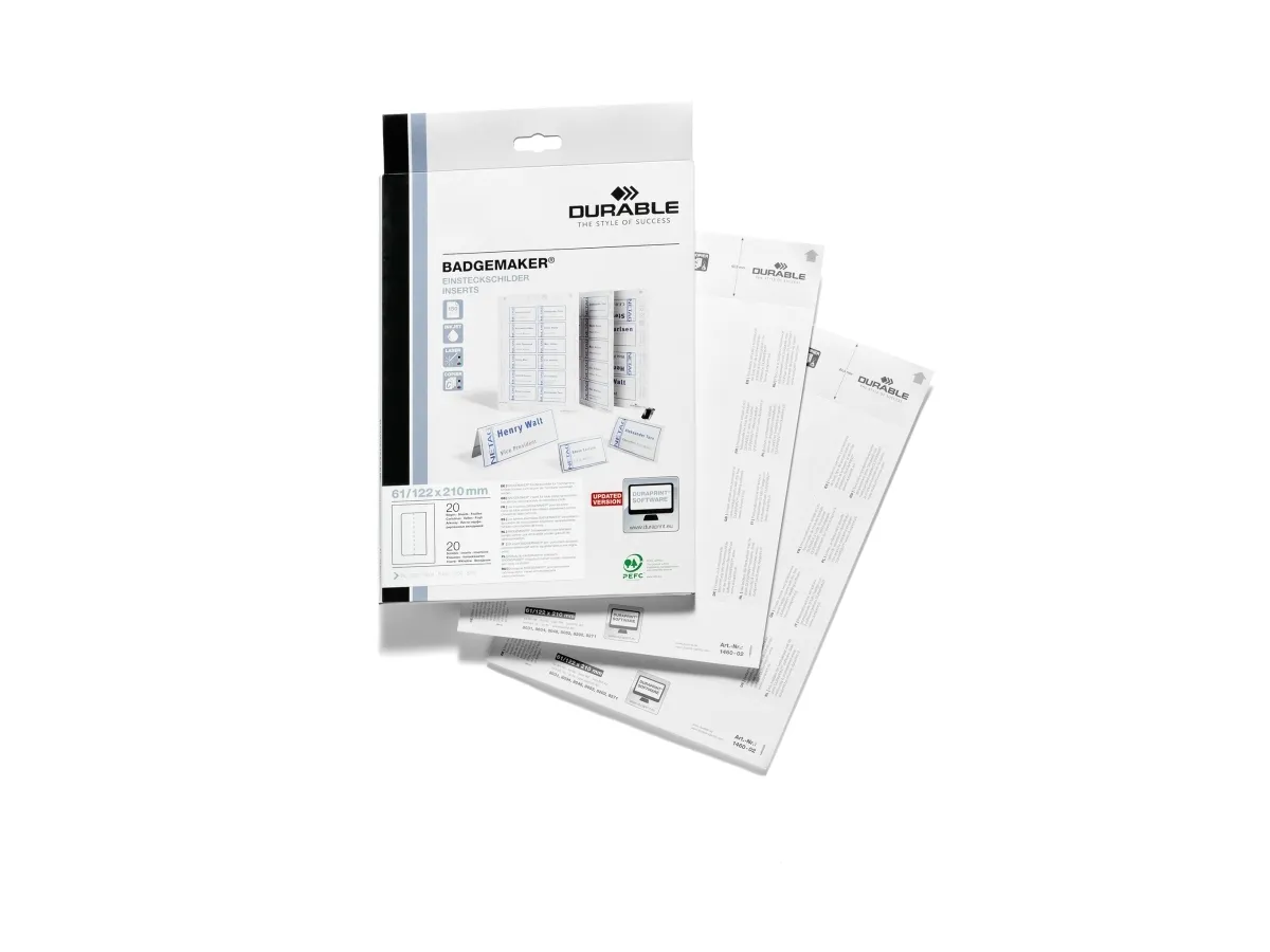 Durable for table place name holder Badge Inserts 61/122 x 210 mm, Vit, Rektangel, 11,2 cm, 21 cm, 20 styck