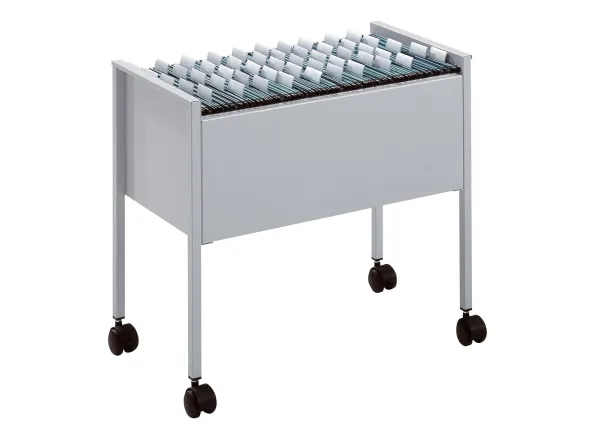 Hängmappvagn för ca 80 A4-hängmappar. Utrustad med fyra hjul, varav två med bromsar för stabilitet under användning. Tillverkad av epoxipolyesterbelagt stål för att ge en reptålig yta. Levereras platt förpackad med monteringsanvisningar. Mått: BxHxD 655x592x368
