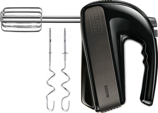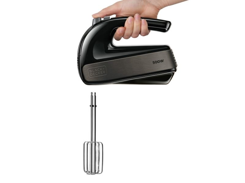Black & Decker BXMX500E, Handmixer, Svart, Knådning, Mixning, Knappar, Handtag, Plast, Rostfritt stål, 500 W