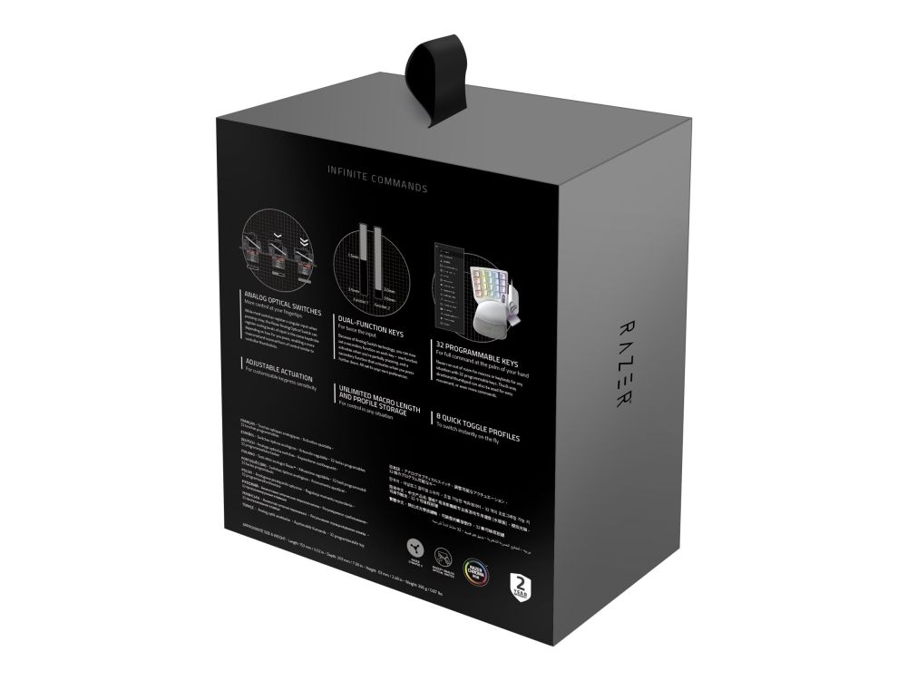 Razer Tartarus Pro - tangentsats - med 8-way directional thumbpad, rullningshjul, tangentbordsindikator, hyperrespons tumknapp, spacebar-aktuator - kvicksilvervit Inmatningsenhet