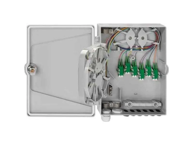 APCAPL hustilslutningskasse, overflademonteret, kan aflåses, med 4xLC-D - koblinger (SM/APC), en velordnet og overskuelig indføring af mikrorørsystemer, sammenklappelig sparingsenhed med overholdelse af bøjningsradier ved klapper, overskuelig fiber- og klessmanagement i spaltekassetten, spillekassette til optagelse af 24 pigtails, integreret kam til optagelse af krympepuden, Parat til splidssamling med separat og lagt pigtails inkl. 2 x LC-D - keramik-koblinger, grøn, 24 LC-fiberpigtails E9/125 Ám, 2 m, SM OS2 APC, Grade B1, G657.A, med måleprotokol til alle fibre inkl.. Serienummer, 12 drop-kabelindføringer (?3mm) i bunden af kabinettet, 2 kabelindgange (M20) i bunden af apparatet, valgfri kabelindgang i toppen af huset, stabil trækaflastninger til alle kabelindgange, endstop, 7 mm med transparent Locking clip medfølger, stabilt ABS-plastkabinet, aflåseligt låg med 2 forskruning, 1 x M20-leveres med monteringsmateriale, medfølger