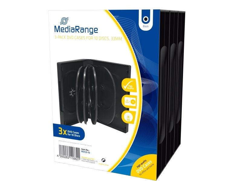 MediaRange BOX35-10, DVD-fodral, 10 diskar, Svart, Plast, 120 mm, RoHS