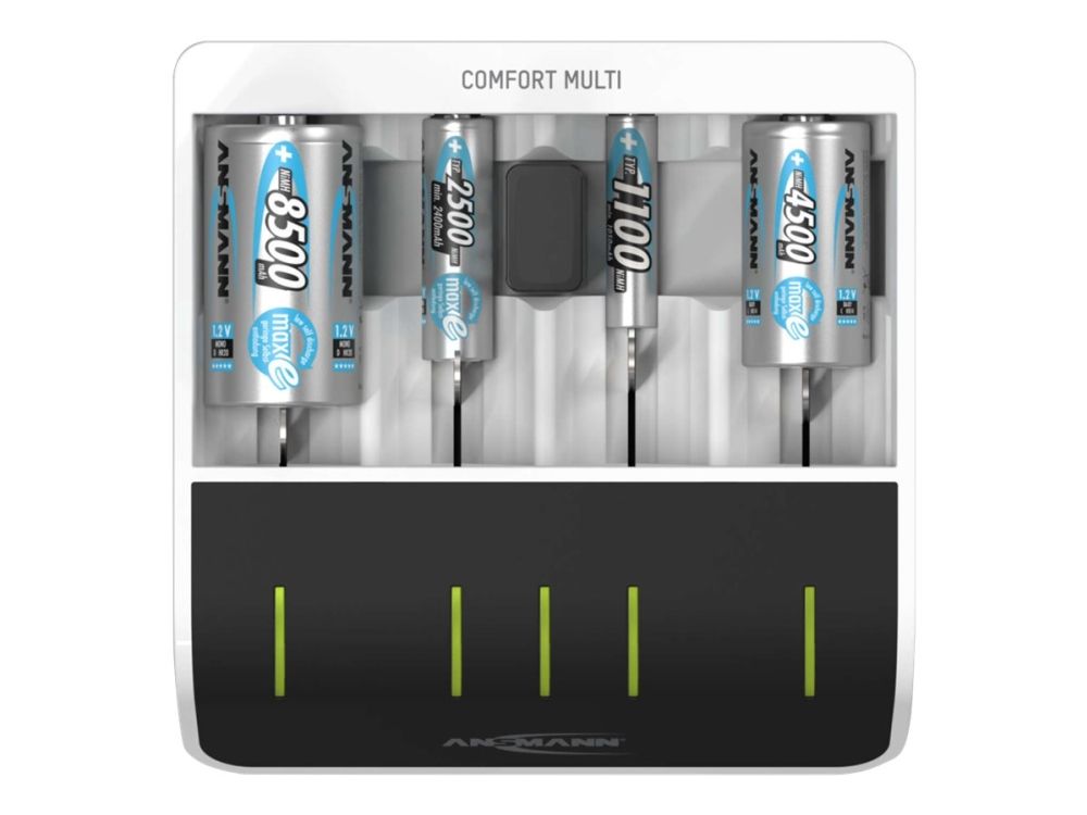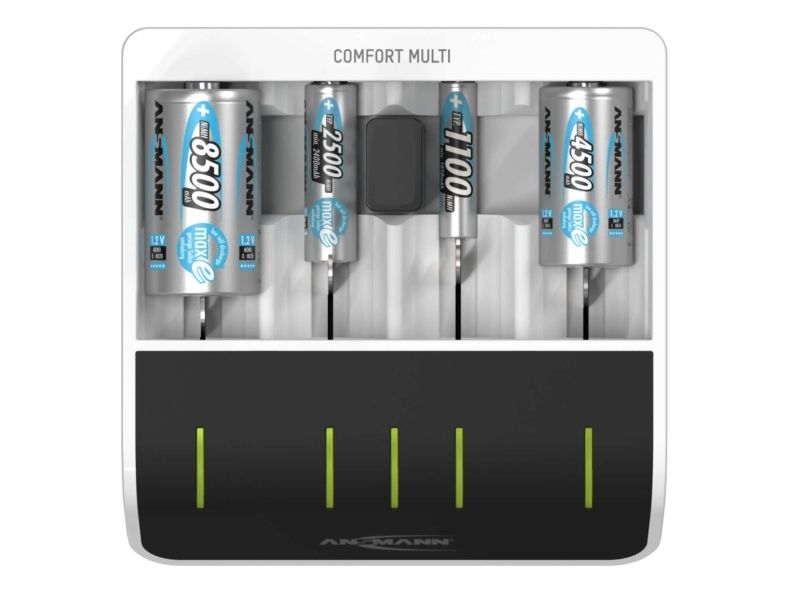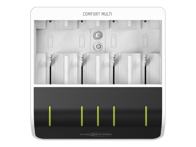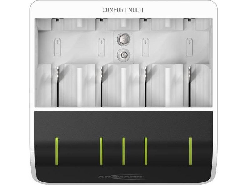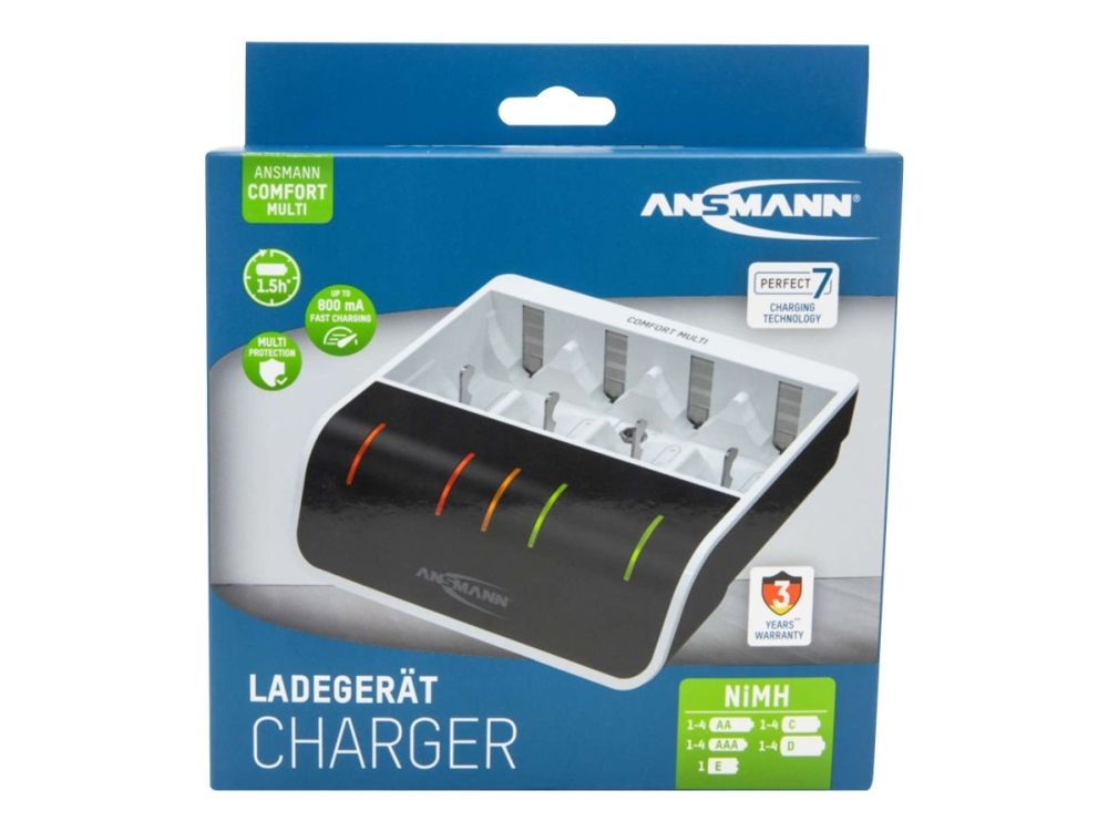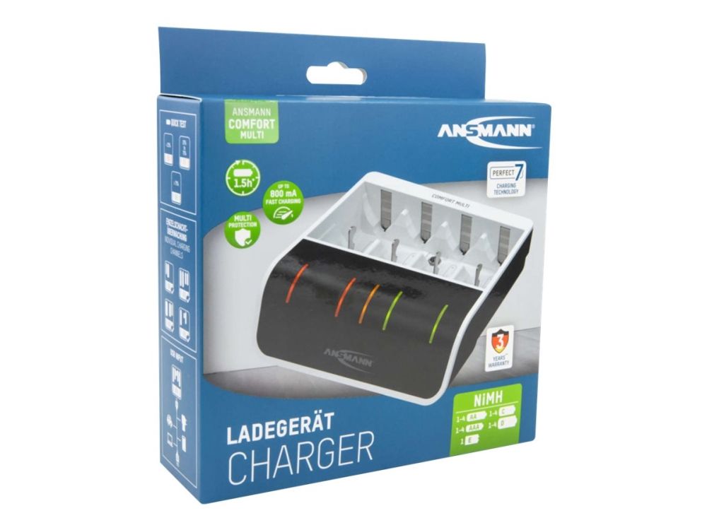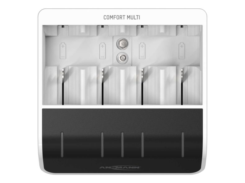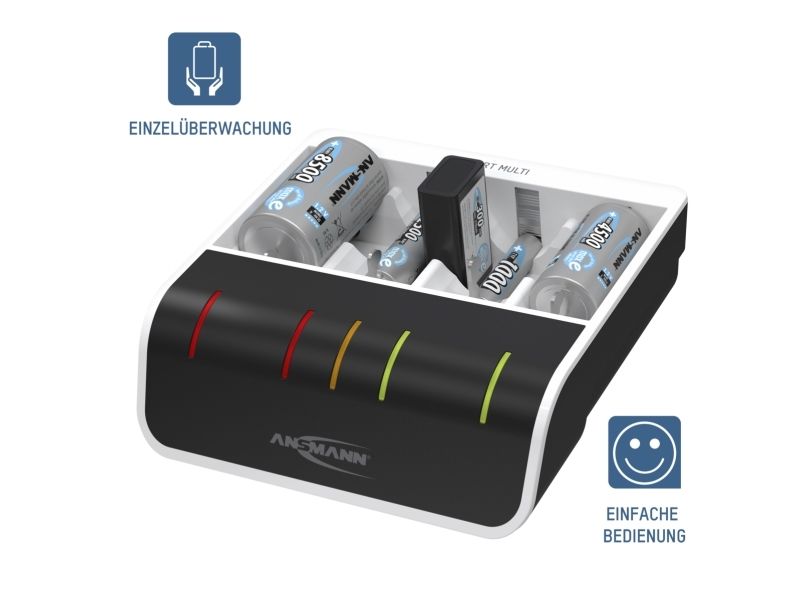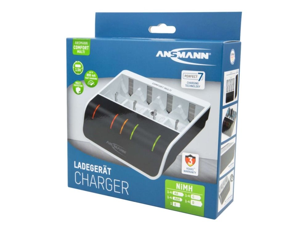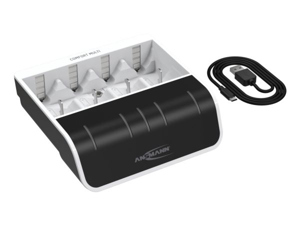 ANSMANN Comfort Multi - 1,5 h USB-batteriladdare - (för AA, AAA, C, D, 9V) - 800 mA - vit, svart