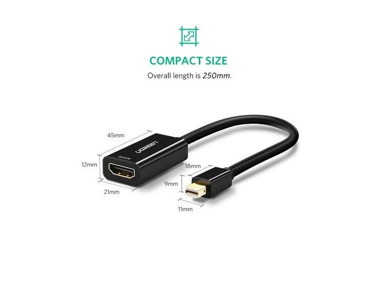 Ugreen 40360, 0,25 m, Mini DisplayPort, HDMI, Hankoppling, Honkoppling, Rak