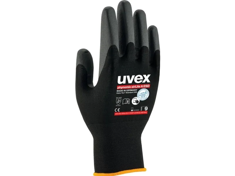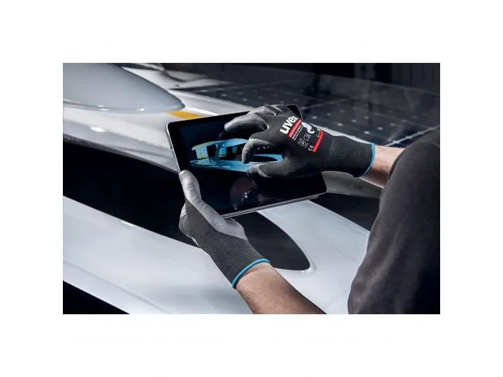 The uvex phynomic airLite A ESD is the lightest safety glove in its class and offers a noticeable difference in wearer comfort. The new assembly glove combines high sensitivity and tactile feel with lightness and breathability, all in one glove. This makes the uvex phynomic airLite A ESD perfect for precision work and handling very small or fine components — and you can still use almost all screens, tablets and mobile phones when you are wearing them.
