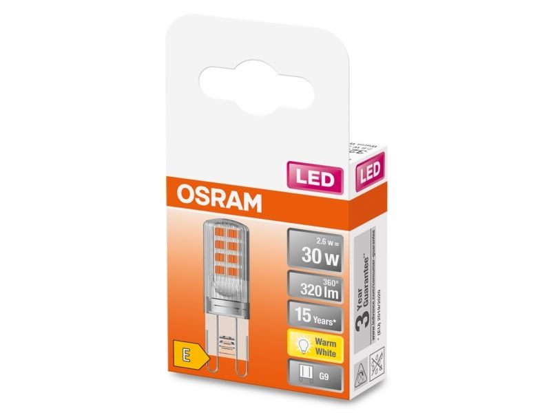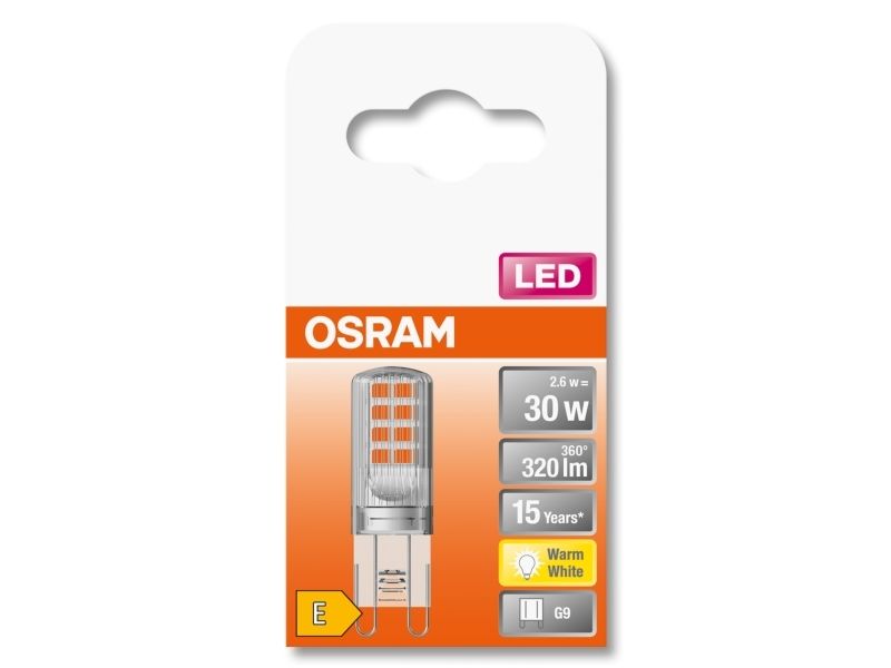 OSRAM PIN - LED-glödlampa - form: T15 - G9 - 2.6 W (motsvarande 30 W) - klass E - varmt vitt ljus - 2700 K