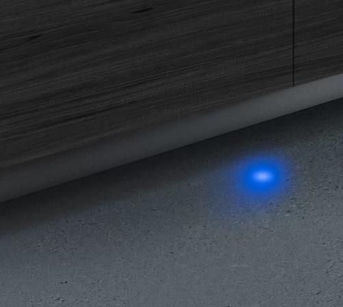 Ljusindikatorn visar på golvet att det pågår ett program.