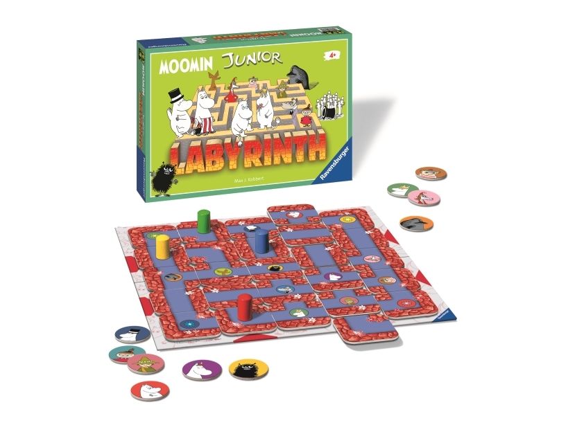 Mumintrollet, Lilla My och alla dina favoritfigurer gömmer sig i den spännande labyrinten och väntar på att du ska hitta dem! Men var försiktig – vägarna kan ändras när som helst och det som tidigare var en väg kan ha förvandlats till en mur! Flytta labyrintbrickorna för att skapa nya vägar och leta dig fram till de olika figurerna i den här roliga labyrinten!