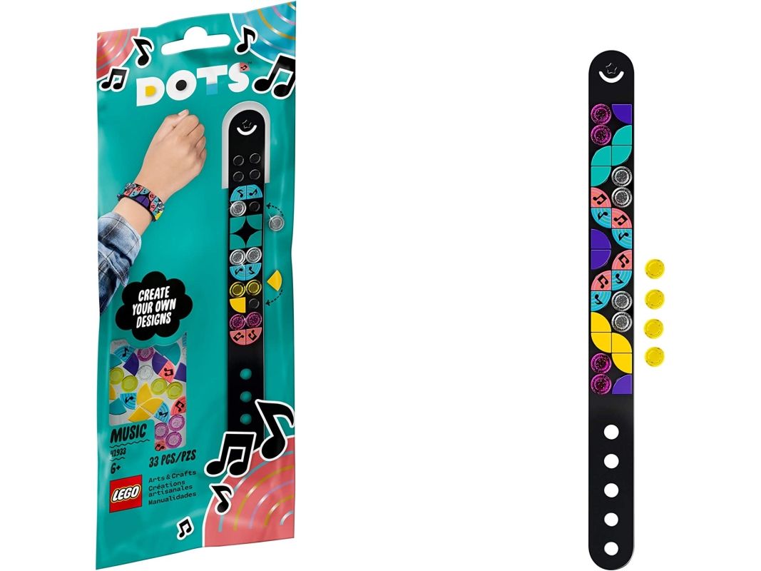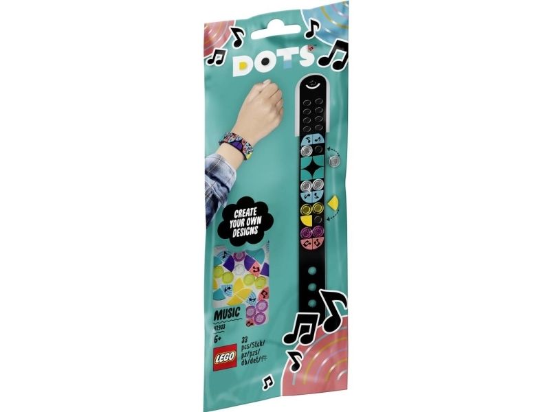 Överraska ett kreativt barn med det lekfulla setet LEGO DOTS Musikarmband (41933) och låt dem påbörja en resa full av oändliga pysselmöjligheter. Unika smycken att visa upp! Barn kan utveckla sin förmåga att uttrycka sig när de dekorerar armbandet, med ett justerbart band och 32 färgglada plattor. Lekarna börjar så fort påsen har öppnats! Detta set är roligt att leka med på egen hand för en snabb, fantasifull skapelse. Barn kan också använda plattorna från LEGO DOTS Extra DOTS - Serie3 och 4 (41921 och 41931) för att utöka sina mönster med coola nya idéer. Alla pysselfantaster kommer att älska detta kreativa set. Det hållbara armbandet, de färgglada plattorna och de speciella dekorerade plattorna blir en rolig present eller extragåva till barn från 6 år. Litet och helt bärbart. Armbandet är 20 cm långt och detta set är perfekt för unga designer som vill öva på att göra egna skapelser och sedan använda sin favoritversion. Öppna leksakspåsen och låt det roliga börja med att dekorera armbandet. Enkel inspiration på förpackningen gör det lätt att designa, eller så kan barn skapa sina egna mönster om och om igen. Ge barn en kreativ present med LEGO DOTS seten. Detta smarta, handgjorda armband inspirerar till obegränsade designmöjligheter för att hjälpa till att utveckla barns kreativitet och självförtroende genom lek. LEGO DOTS seten erbjuder fri kreativitet och uppmuntrar barn att uttrycka sig genom att skapa och anpassa smycken eller inredningsprylar, så att en ny grupp barn får uppleva i LEGO lek., LEGO delar uppfyller stränga branschstandarder för att säkerställa att de är hållbara, kompatibla och kan sättas ihop och dras isär lika lätt varje gång - så har det varit sedan 1958. LEGO delar tappas, värms, krossas, vrids och analyseras för att säkerställa att de uppfyller strikta globala säkerhetsstandarder.