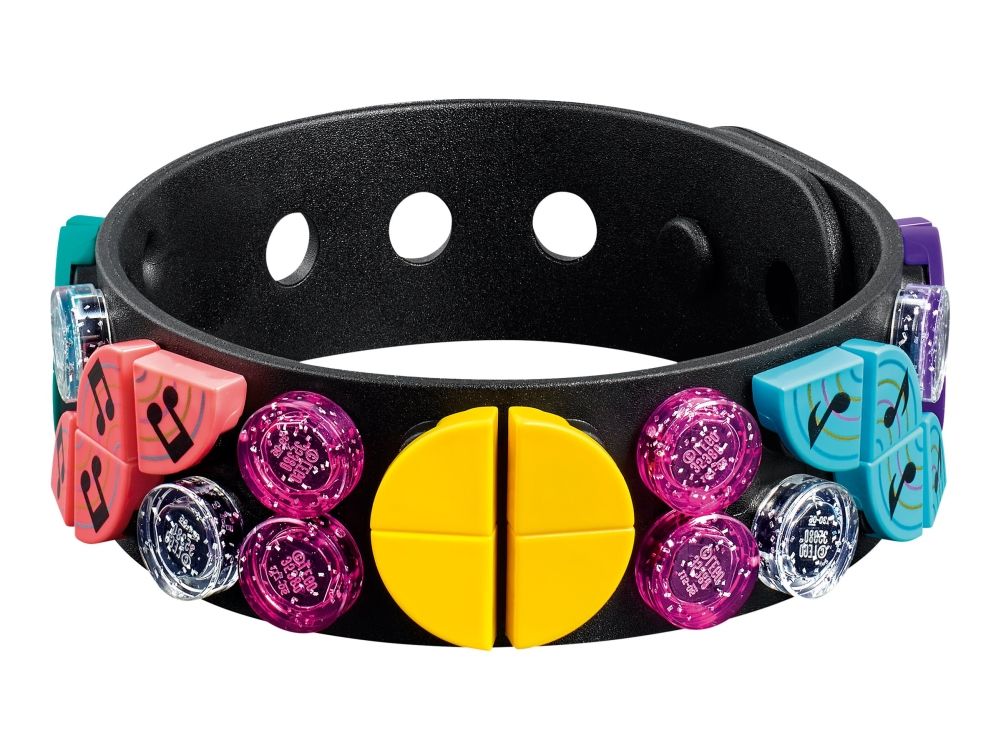 Musikälskande barn kommer att älska att skapa och använda detta LEGO DOTS Musikarmband (41933)! Detta kreativa lekset innehåller ett justerbart, flexibelt, högkvalitativt svart armband som passar runt större eller mindre handleder och kan dekoreras och bäras i all oändlighet. Setet innehåller också 32 färgglada plattor, inklusive plattor dekorerade med noter med metallisk effekt, genomskinliga plattor och glitterplattor. Det är tänkt att vara en enkel, intuitiv byggprocess så att barn kan designa sitt eget armband och göra det unikt personligt för att matcha outfit eller humör.