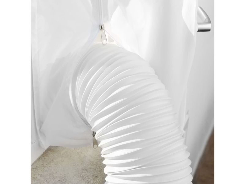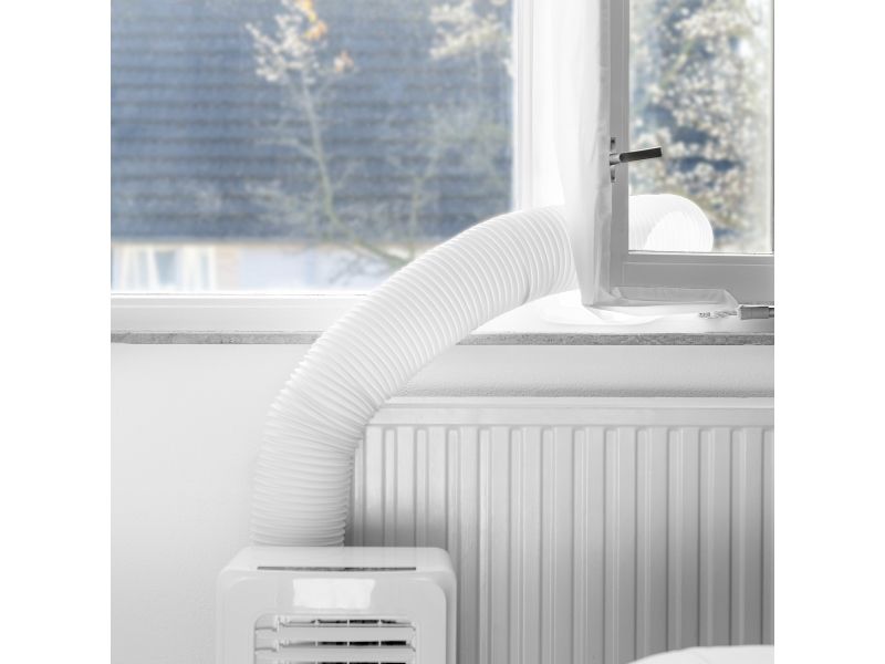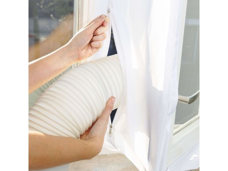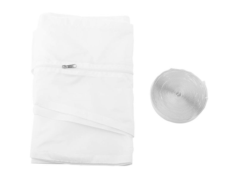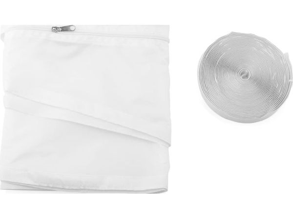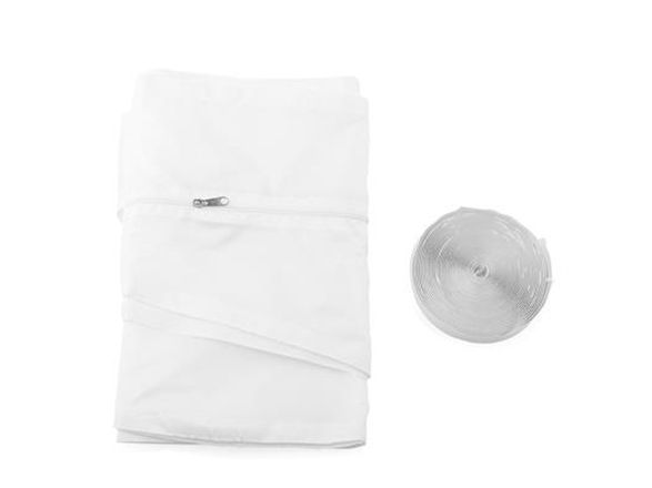 Window seal for mobile air conditioning units that prevent the return flow of air and humidity. With a circuit dimension of 400 cm, Velcro tape and zip, made of 100% Polyester.