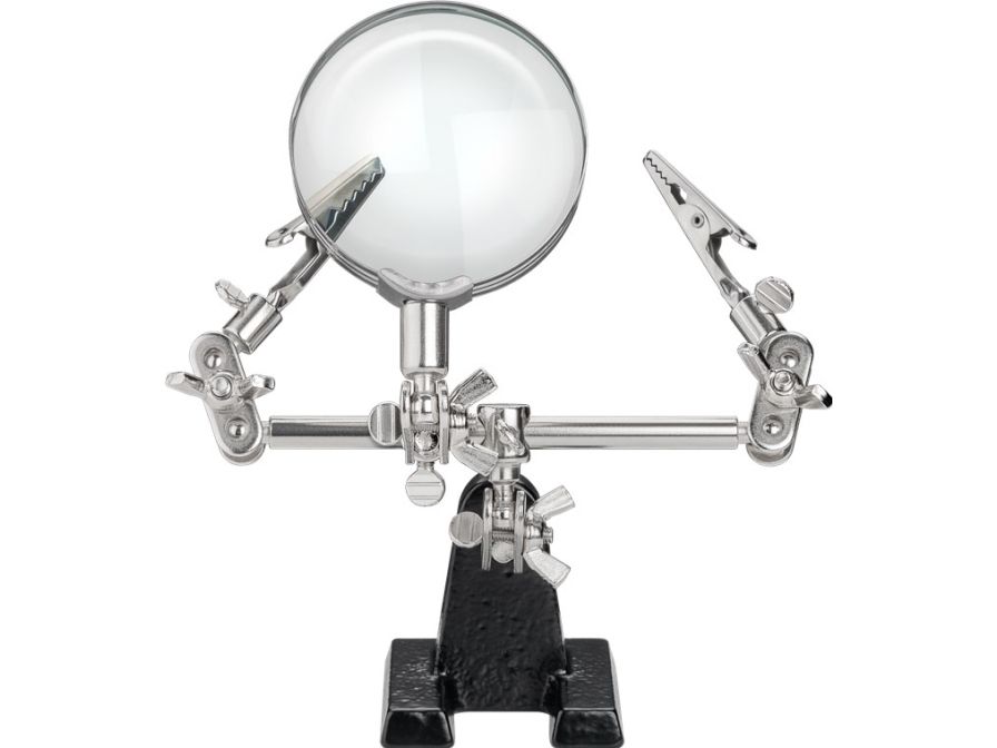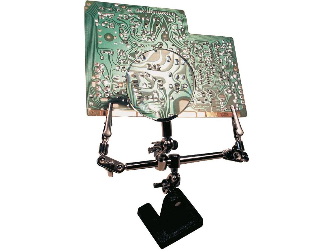 Inkl. förstoringsglas med glaslins (Ø 59,7 mm) och 2,5x förstoring för optimalt arbete även på små föremål som lödpunkter på kretskort eller kabeländar