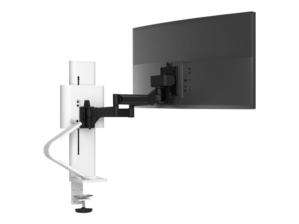 Pivot-fäste, bas, VESA-bricka, lyftpost, förlängningsarmar, bordsklämma i 2 delar, kabelhanteringskanal