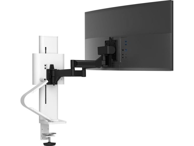 Den här intuitiva bildskärmsmonteringen kan flexibelt anpassas till varje enskild användares arbetssätt och behov. Den kan smidigt justeras mellan uppgifter och ställningar för att uppmuntra till mer rörelse och samarbete, och enkelt återställas till det ursprungliga läget.