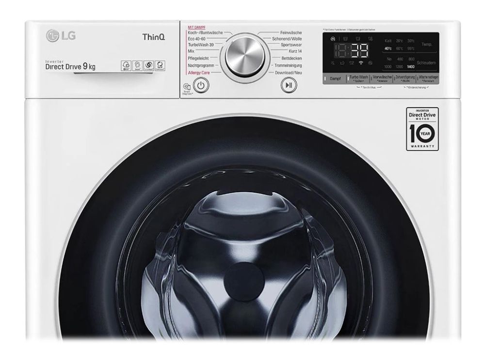 LG F4WV709P1E - Tvättmaskin - Wi-Fi - bredd: 60 cm - djup: 56.5 cm - höjd: 85 cm - frontmatad - 68 liter - 9 kg - 1400 rpm - vit