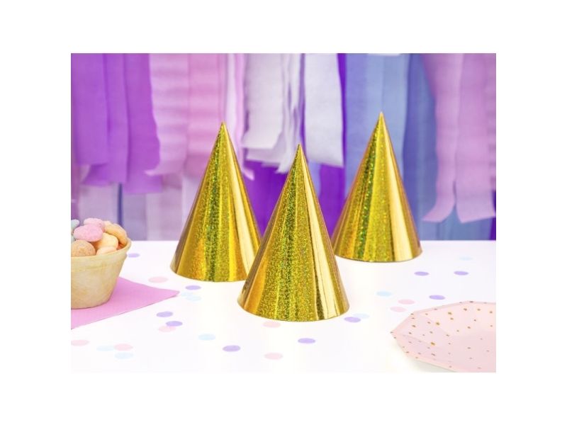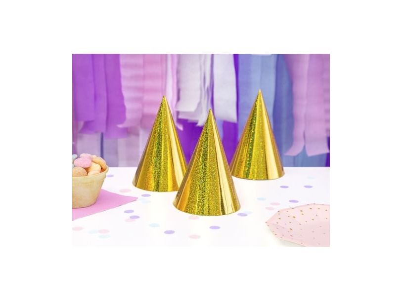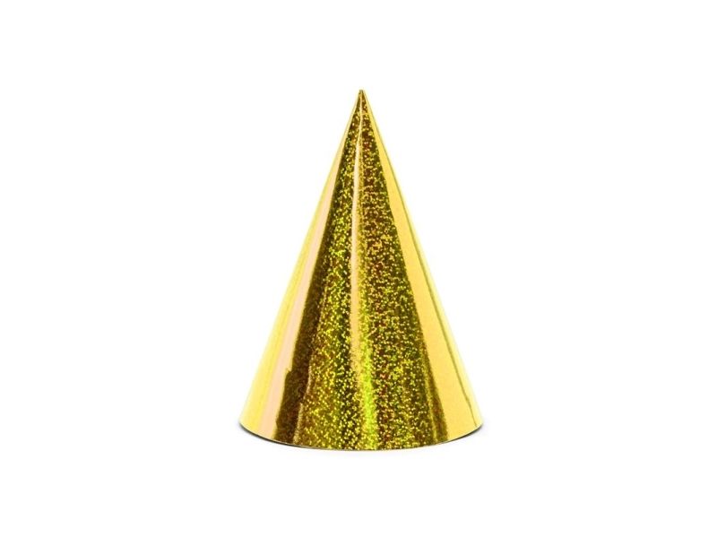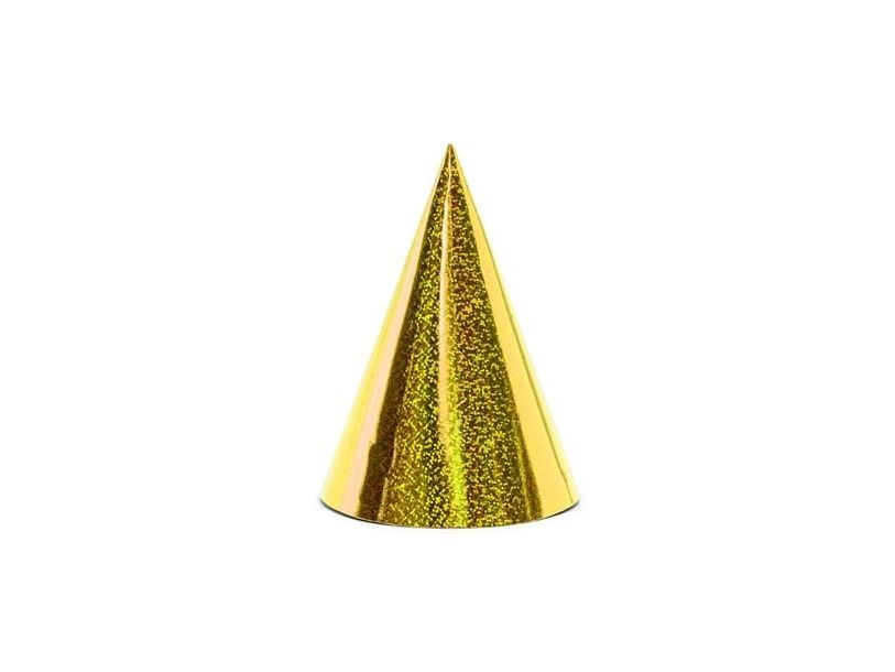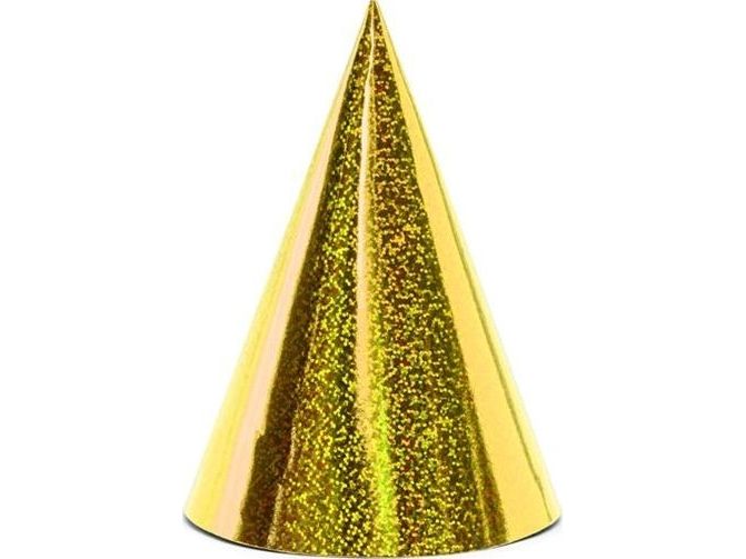 PartyDeco CZAP6-019, Partyhatt, Guld, Födelsedag, 160 mm, 10 cm, 6 styck