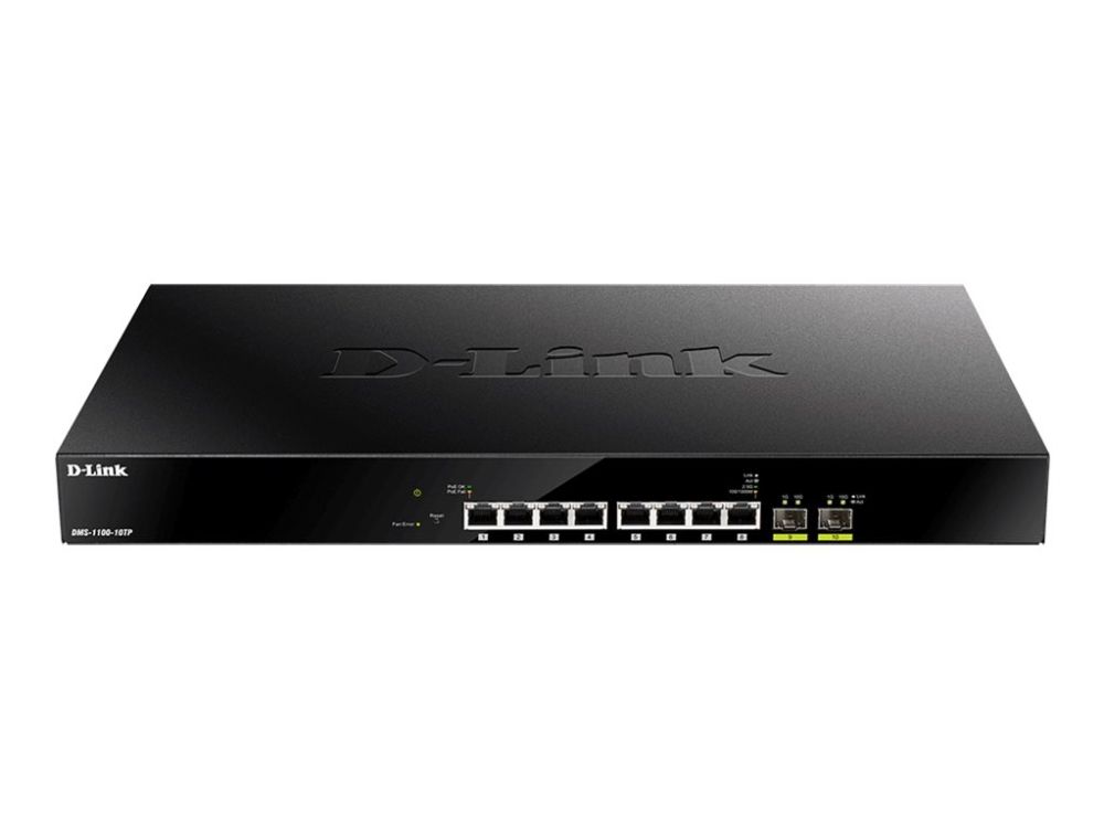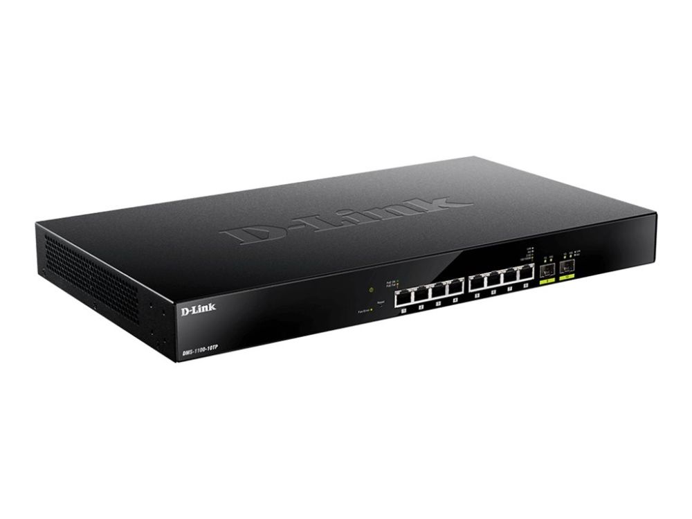 The D-Link DMS-1100-10TP is a versatile switch designed for high-performance networking needs. With a switching capacity of 80 Gbps and support for 2.5 Gigabit Ethernet, it ensures reliable data transfer across various applications. This rack-mountable switch is equipped with 8 100/1000/2.5G PoE+ ports and 2 additional 10 Gigabit SFP+ ports, providing flexibility and enhanced connectivity options.