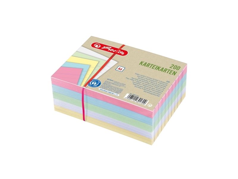 herlitz skrivkort A6 linjerat 4 färger + vit blad 200 st
