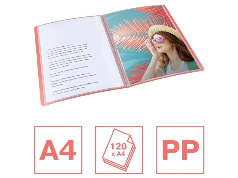 Esselte Colour'Breeze - Visningsbok - 60 utrymmen - ryggbredd: 21 mm - för A4 (210 x 297 mm) - kapacitet: 120 ark - translucent coral