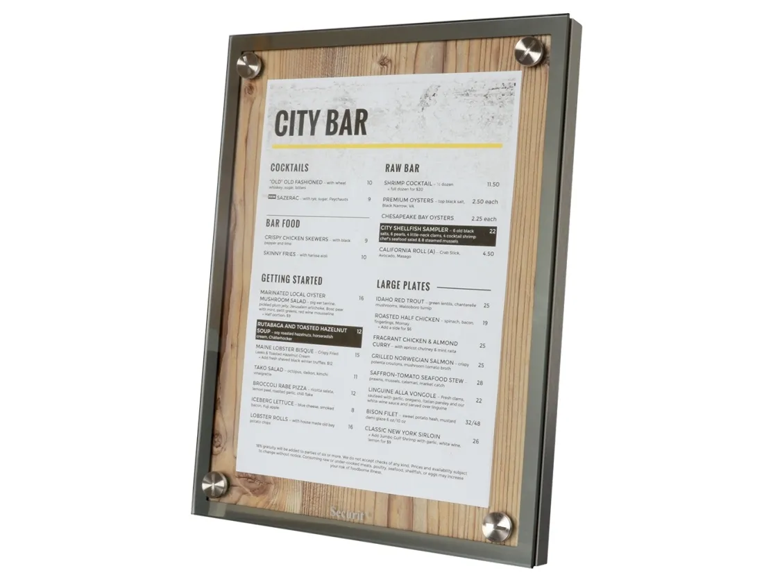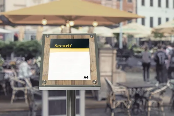 Securit MCS-A4-OAK, Informationsställ, A4, Glas, Plast, Rostfritt stål, Trä, Satinstål, Trä, 340 mm, 90 mm