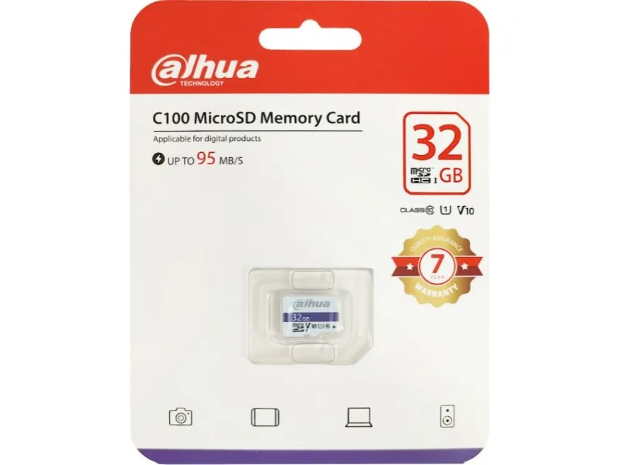 Dahua Technology C100, 32 GB, MicroSDHC, Klass 10, UHS-I, 95 MB/s, 25 MB/s